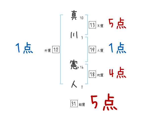 真川憲人さんの画数の鑑定結果