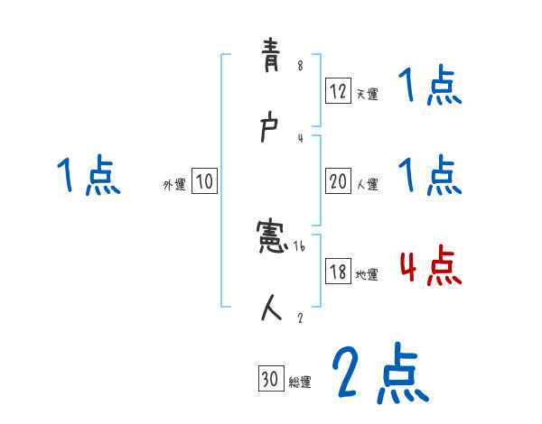 青戸憲人さんの画数の鑑定結果