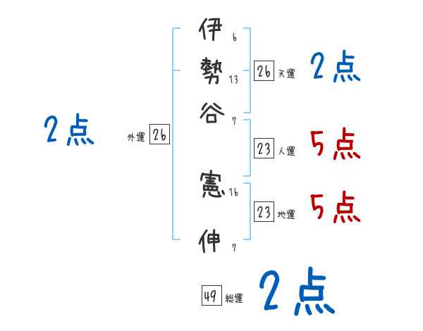 伊勢谷憲伸さんの画数の鑑定結果
