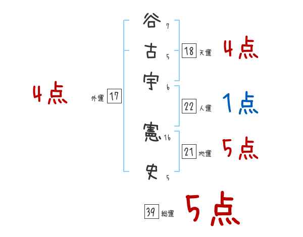 谷古宇憲史さんの画数の鑑定結果