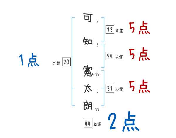 可知憲太朗さんの画数の鑑定結果