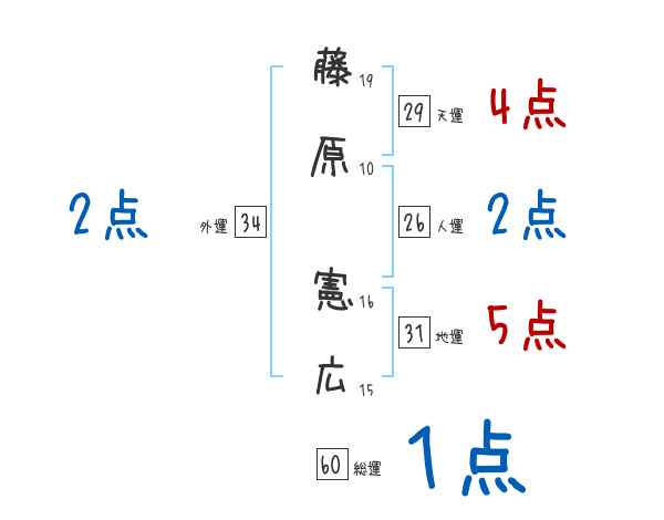 天運![]() | 藤原憲広さんの天運は29画の4つ星!完全主義で才能がある。厳格な心の持ち主。 家系が持つ宿命的な運勢を表します。祖先から受け継いだ苗字ですので自分の力が及びません。家柄を象徴します。 |