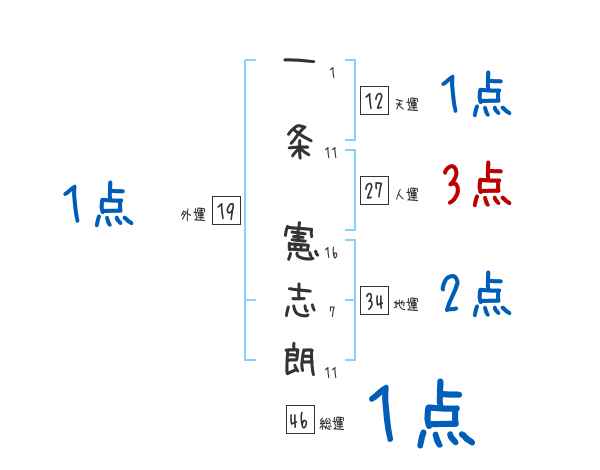 外運![]() | 一条憲志朗さんの外運は19画の1つ星!優れた才能を持ちますが、協調性が足りないことも。周りの人と協力する事を意識しましょう。 生活面を象徴する運勢です。外部から受ける影響力を表し、結婚運、家庭運や職場、環境への順応性を表します。 |