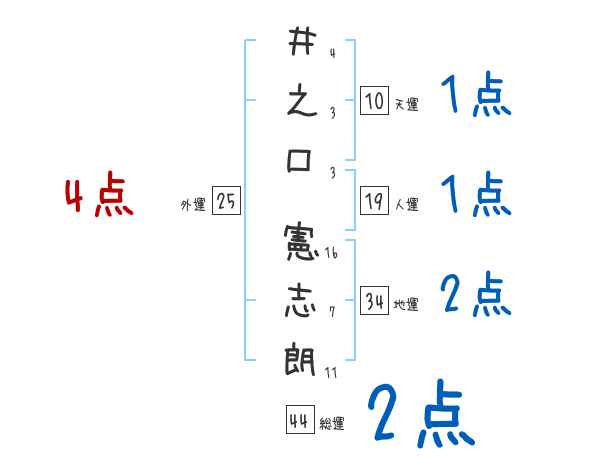 井之口憲志朗さんの画数の鑑定結果