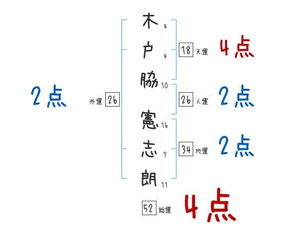 木戸脇憲志朗さんの画数の鑑定結果