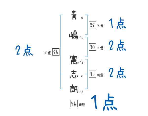青嶋憲志朗さんの画数の鑑定結果