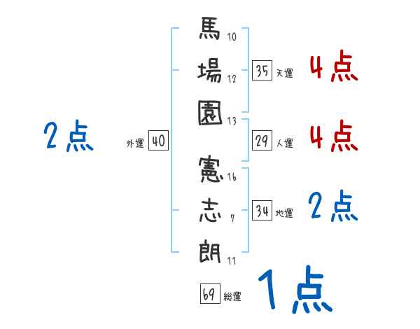 馬場園憲志朗さんの画数の鑑定結果