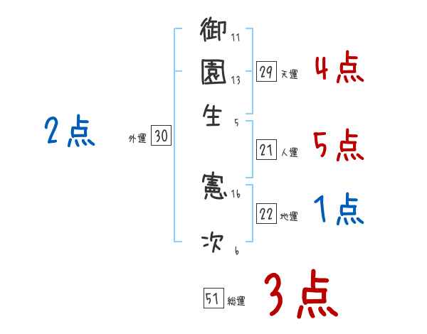御園生憲次さんの画数の鑑定結果
