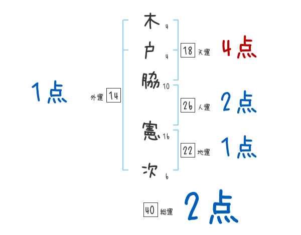 木戸脇憲次さんの画数の鑑定結果