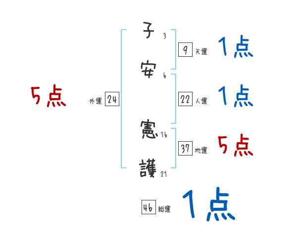 子安憲護さんの画数の鑑定結果