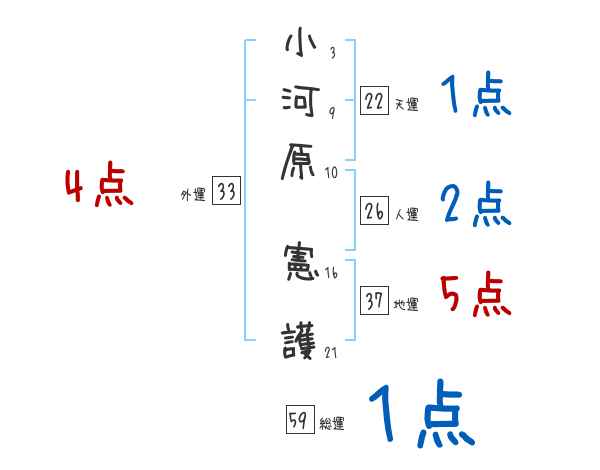 小河原憲護さんの画数の鑑定結果