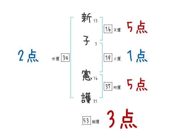 新子憲護さんの画数の鑑定結果
