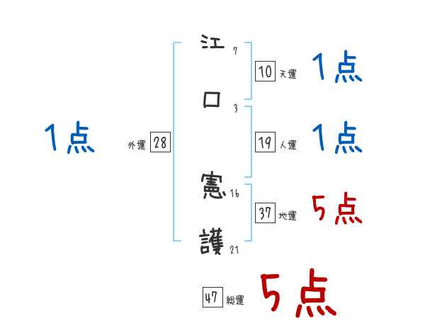 江口憲護さんの画数の鑑定結果