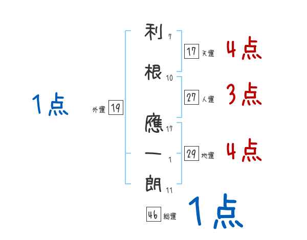 天運![]() | 利根應一朗さんの天運は17画の4つ星!積極的な行動力。地位を気づき財産を手に入れる。純粋な心と直感力。 家系が持つ宿命的な運勢を表します。祖先から受け継いだ苗字ですので自分の力が及びません。家柄を象徴します。 |