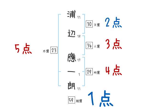 浦辺應一朗さんの画数の鑑定結果