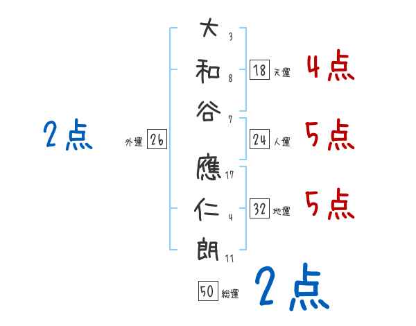 大和谷應仁朗さんの画数の鑑定結果