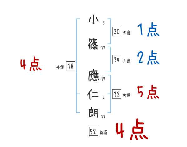 小篠應仁朗さんの画数の鑑定結果