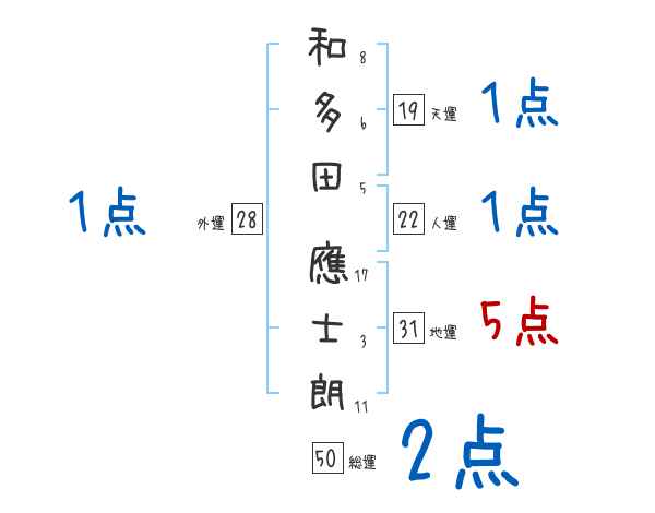 外運![]() | 和多田應士朗さんの外運は28画の1つ星!家庭環境に注意。スポーツで活躍できる能力があるかも。 生活面を象徴する運勢です。外部から受ける影響力を表し、結婚運、家庭運や職場、環境への順応性を表します。 |