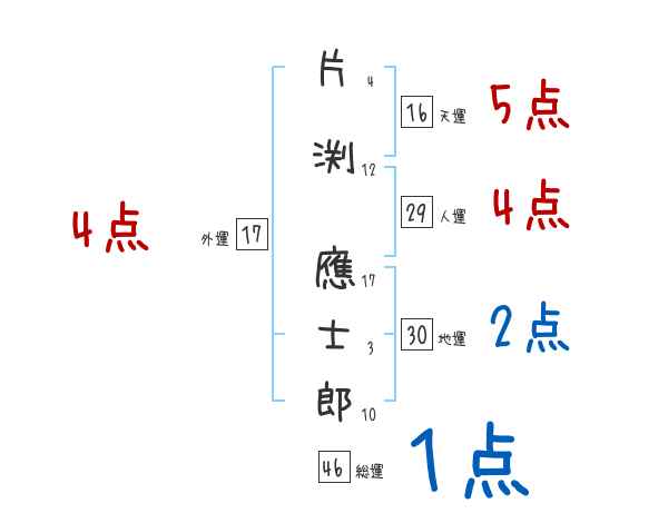 外運![]() | 片渕應士郎さんの外運は17画の4つ星!積極的な行動力。地位を気づき財産を手に入れる。純粋な心と直感力。 生活面を象徴する運勢です。外部から受ける影響力を表し、結婚運、家庭運や職場、環境への順応性を表します。 |