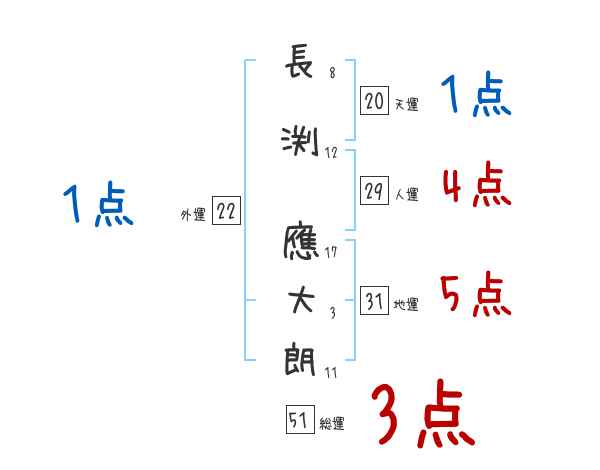 人運![]() | 長渕應大朗さんの人運は29画の4つ星!完全主義で才能がある。厳格な心の持ち主。 性格や才能などを表す2番目に重要な運勢です。人間関係や協調性、社会的な成功に影響します。主に20歳から50歳ぐらいまでの中年期の運勢を表します。 |