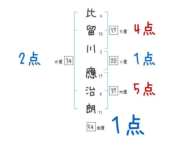 天運![]() | 比留川應治朗さんの天運は17画の4つ星!積極的な行動力。地位を気づき財産を手に入れる。純粋な心と直感力。 家系が持つ宿命的な運勢を表します。祖先から受け継いだ苗字ですので自分の力が及びません。家柄を象徴します。 |