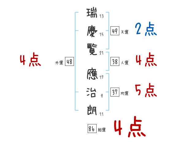 瑞慶覧應治朗さんの画数の鑑定結果