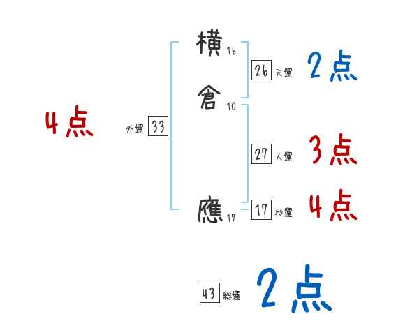 横倉應さんの画数の鑑定結果
