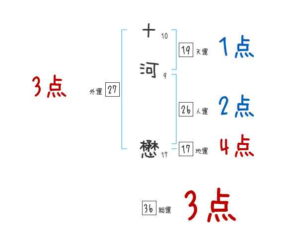 天運![]() | 十河懋さんの天運は19画の1つ星!優れた才能を持ちますが、協調性が足りないことも。周りの人と協力する事を意識しましょう。 家系が持つ宿命的な運勢を表します。祖先から受け継いだ苗字ですので自分の力が及びません。家柄を象徴します。 |