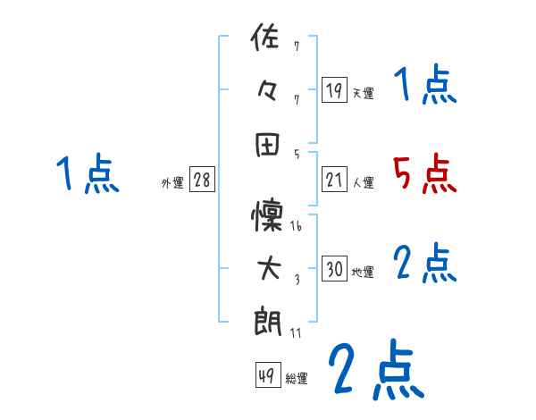 外運![]() | 佐々田懍大朗さんの外運は28画の1つ星!家庭環境に注意。スポーツで活躍できる能力があるかも。 生活面を象徴する運勢です。外部から受ける影響力を表し、結婚運、家庭運や職場、環境への順応性を表します。 |