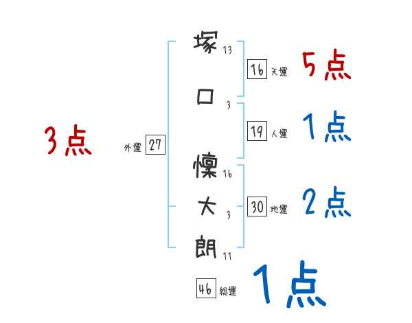 塚口懍大朗さんの画数の鑑定結果