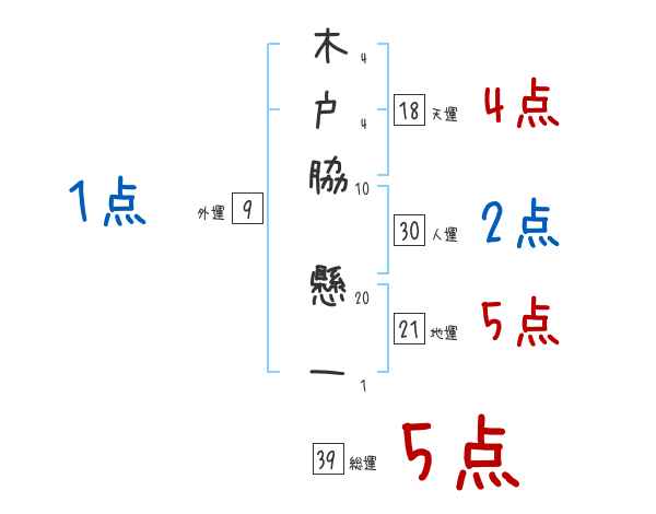 総運![]() | 木戸脇懸一さんの総運は39画の5つ星!社交性に優れ人望が厚い。人の上に立ち成功する。 あなたの人生を表す1番重要な運勢です。生涯を通じて影響する総合運となり、主に50歳以降の晩年期に影響を及ぼします。 |
