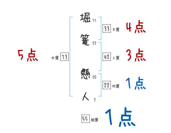 堀篭懸人さんの画数の鑑定結果