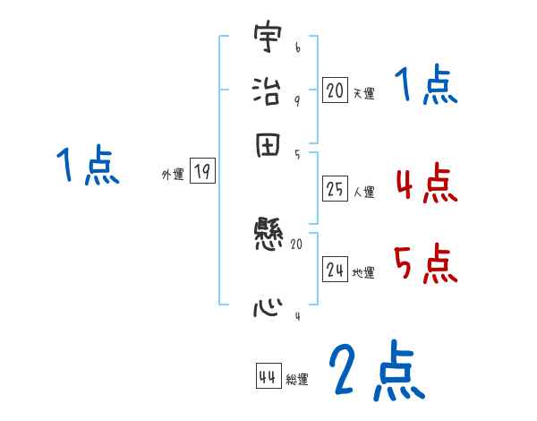 宇治田懸心さんの画数の鑑定結果