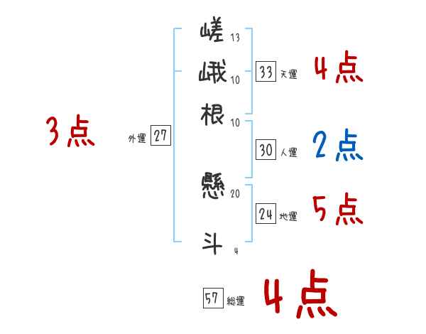嵯峨根懸斗さんの画数の鑑定結果