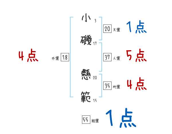 小磯懸範さんの画数の鑑定結果