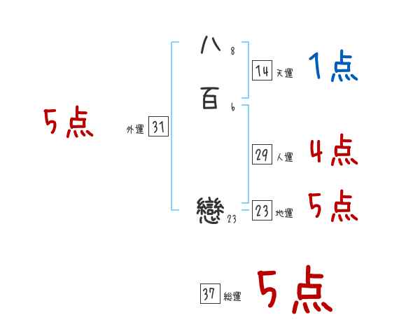 八百戀さんの画数の鑑定結果