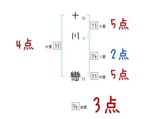 十川戀さんの画数の鑑定結果