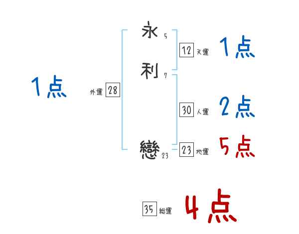 永利戀さんの画数の鑑定結果