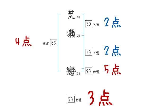 荒瀬戀さんの画数の鑑定結果