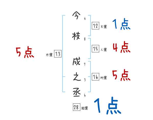 地運![]() | 今枝成之丞さんの地運は16画の5つ星!人望が厚く大きく発展する。逆転成功が見える。 個性を表す基礎的な運勢です。性格形成や対人関係、行動力など家庭環境に影響されます。主に誕生してから20歳くらいまでの若年期の運勢を表します。 |