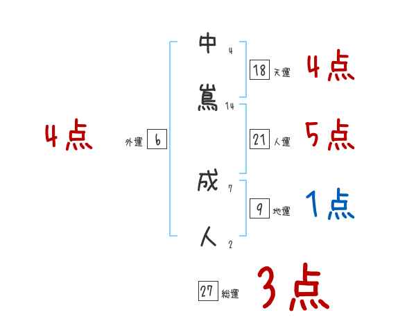 中嶌成人さんの画数の鑑定結果