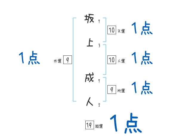 天運![]() | 坂上成人さんの天運は10画の1つ星!不安を感じやすい傾向。ストレスを抱えないように注意しましょう。 家系が持つ宿命的な運勢を表します。祖先から受け継いだ苗字ですので自分の力が及びません。家柄を象徴します。 |