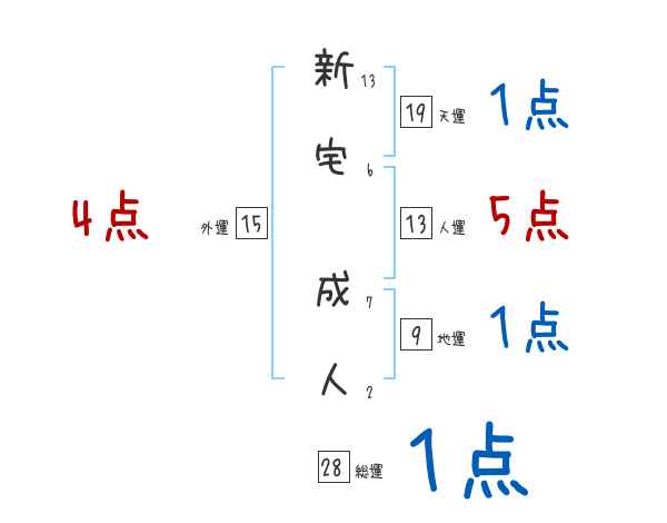 新宅成人さんの画数の鑑定結果