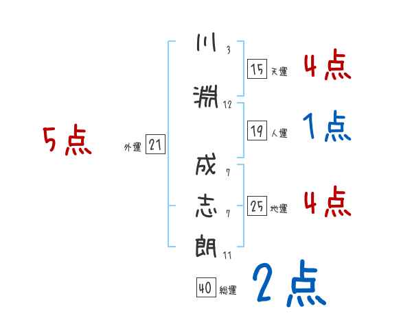外運![]() | 川淵成志朗さんの外運は21画の5つ星!統率力がある。独立し成功する。名誉を手に入れる。 生活面を象徴する運勢です。外部から受ける影響力を表し、結婚運、家庭運や職場、環境への順応性を表します。 |