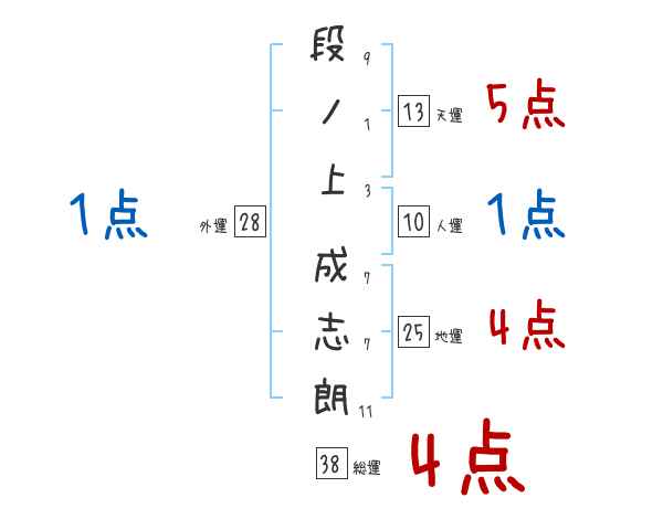 総運![]() | 段ノ上成志朗さんの総運は38画の4つ星!温厚な性格で技術的な才能を発揮する。職人的な仕事に向いている。 あなたの人生を表す1番重要な運勢です。生涯を通じて影響する総合運となり、主に50歳以降の晩年期に影響を及ぼします。 |