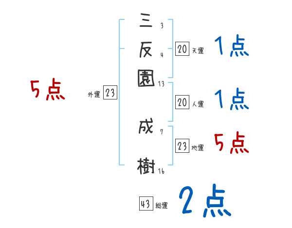 地運![]() | 三反園成樹さんの地運は23画の5つ星!想像力に優れ活力がある。一代で成功し名誉を手に入れる。 個性を表す基礎的な運勢です。性格形成や対人関係、行動力など家庭環境に影響されます。主に誕生してから20歳くらいまでの若年期の運勢を表します。 |