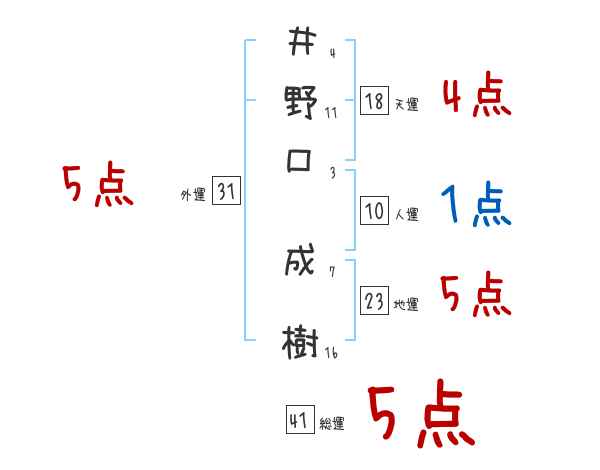 井野口成樹さんの画数の鑑定結果