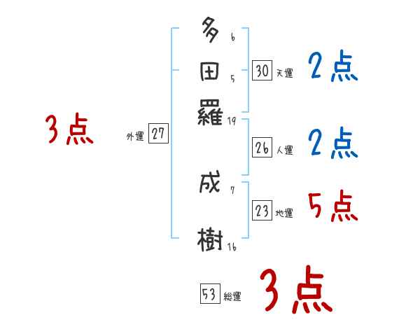 多田羅成樹さんの画数の鑑定結果