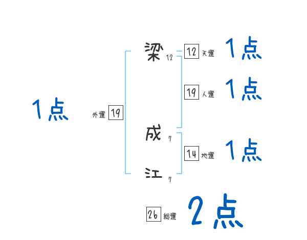 梁成江さんの画数の鑑定結果