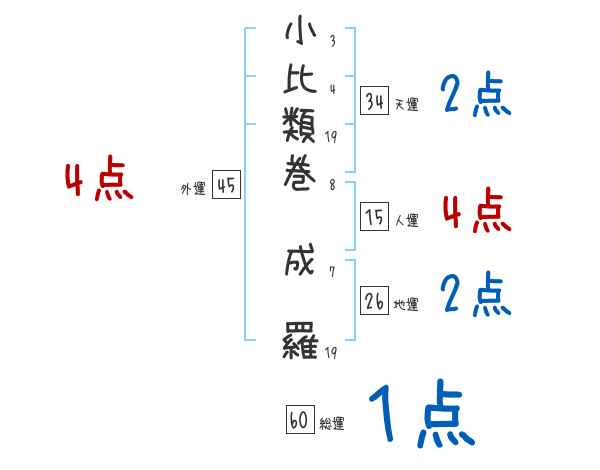 家系が持つ宿命的な運勢を表します。祖先から受け継いだ苗字ですので自分の力が及びません。家柄を象徴します。